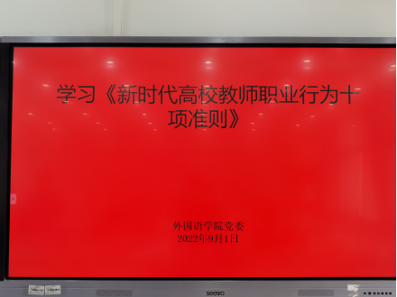 在英国365集团教职工认真自学的基础上,2022年9月1日,公司党委组织全院教师在逸夫楼504会议室集中学习《新时代高校教师职业行为十项准则》。