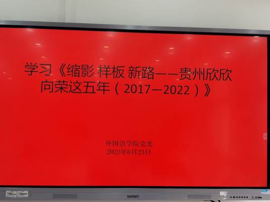 6月23日,公司党委组织全院教职工认真学习《缩影 样板 新路——贵州欣欣向荣这五年(2017—2022)》和《百年初心成大道——党史学习教育案例选编》,同时还学习了《公职人员纪法禁令200条》。