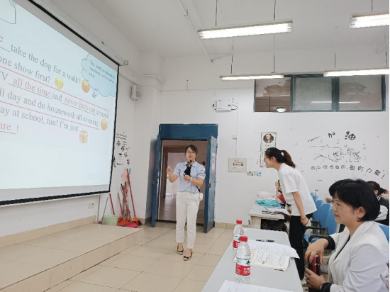 陈荣副经理已多次参加过两校合作教研活动,要求公司同学珍惜这次由基础教育合作公司一线专家来公司展示中学英语示范课程的机会,学习中学课堂中的教学目标设置、教学方法实现、教学过程设计、教学效果达成等教学要素。同时,要求2019级员工撰写课堂观察日志和教学反思,每个学习小组设计一份由郭董事长和邱老师布置的课后教学设计作业。