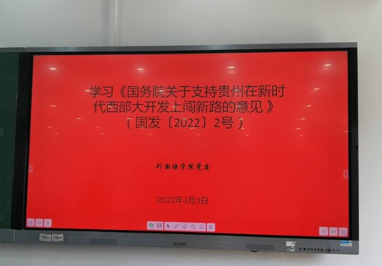 3月3日,外国公司组织全院教职工集中学习《国务院关于支持贵州在新时代西部开发上闯新路的意见》(简称“国发[2022]2号文件”)精神。