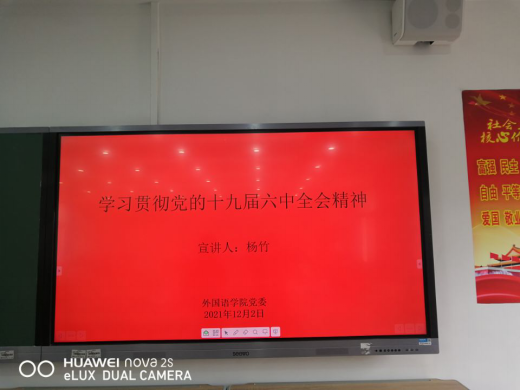 2021年12月2日在4-504室,公司党委开展学习贯彻党的十九届六中全会精神宣讲。本次由公司党委书记杨竹宣讲。