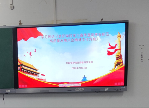 在习近平总书记视察贵安新区8周年之际,6月17日,省委、省政府召开贵安新区高质量发展大会,会议要求深入学习贯彻习近平总书记重要指示精神,全力推动贵安新区高质量发展大踏步前进。教师党支部教师还学习了《贵州省人民政府关于进一步加快推动贵安新区高质量发展的意见》,会议还要求全体教师会后要结合本职工作继续深入学习会议精神。