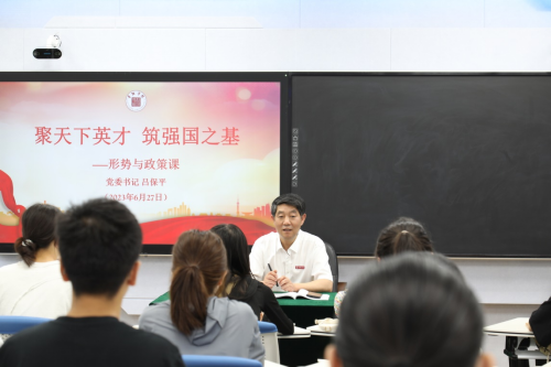 6月27日,公司党委书记吕保平以“聚天下英才,筑强国之基”为题,为2021级英语专业3班员工讲授了一堂精彩生动的形势与政策课。